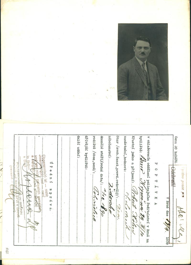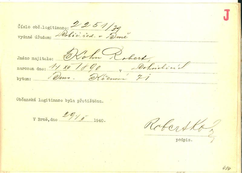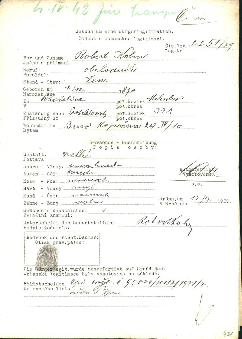 Moravský zemský archiv Brno > Policejní ředitelství Brno > Žádosti židovských občanů určených k transportu o občanské legitimace > Kohn Robert