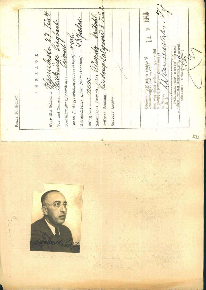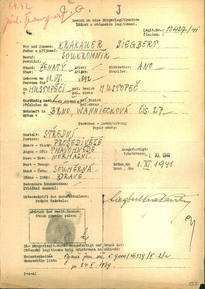 Moravský zemský archiv Brno > Policejní ředitelství Brno > Žádosti židovských občanů určených k transportu o občanské legitimace > Krakauer Siegbert