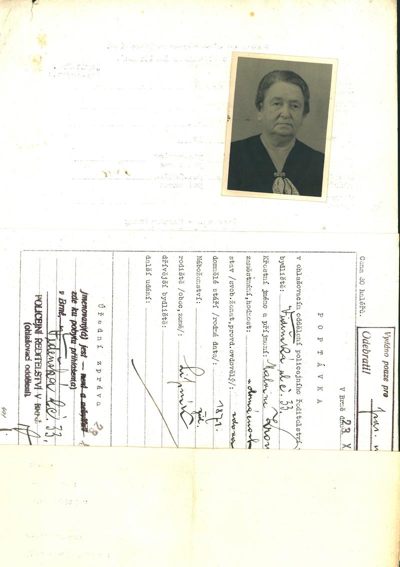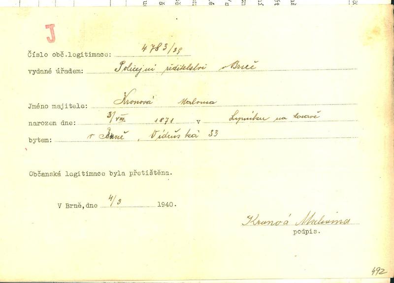 Moravský zemský archiv Brno > Policejní ředitelství Brno > Žádosti židovských občanů určených k transportu o občanské legitimace > Kronová Malvína