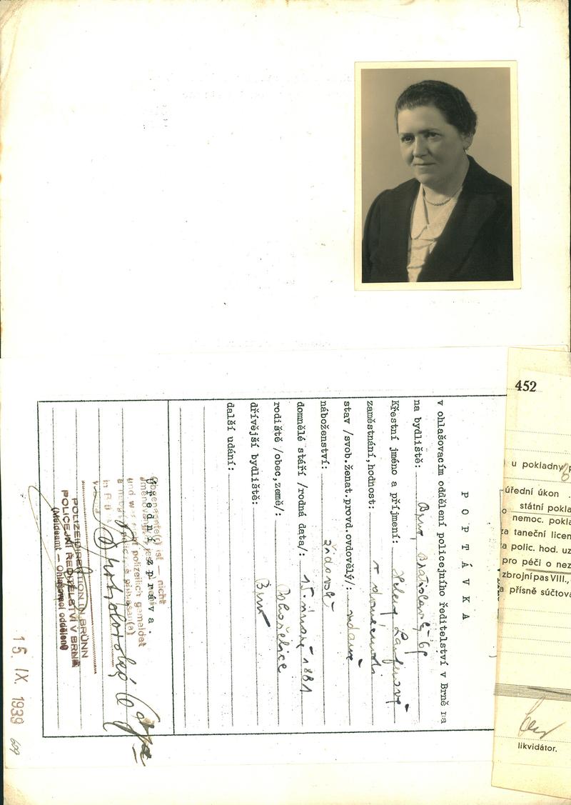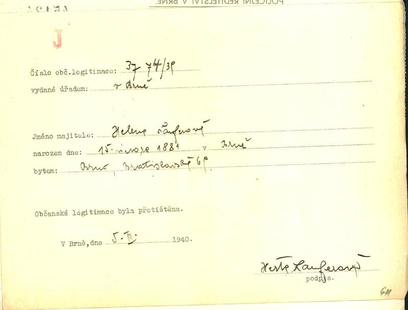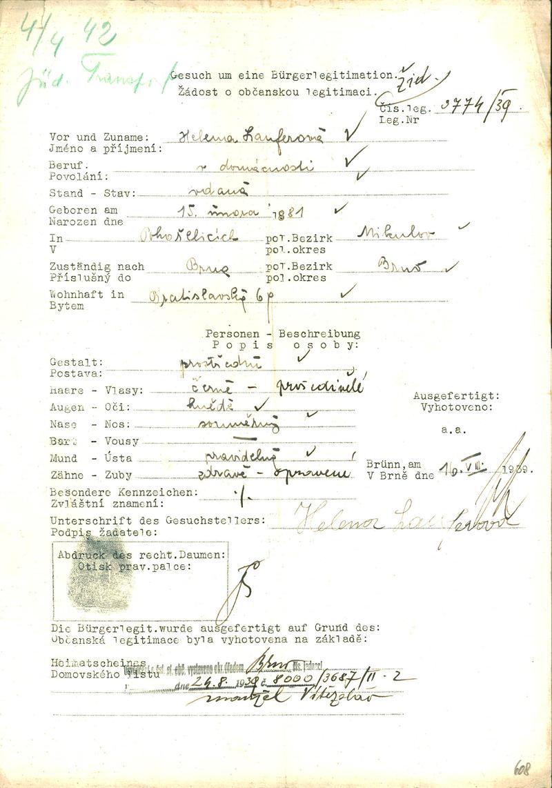 Moravský zemský archiv Brno > Policejní ředitelství Brno > Žádosti židovských občanů určených k transportu o občanské legitimace > Lauferová Helena