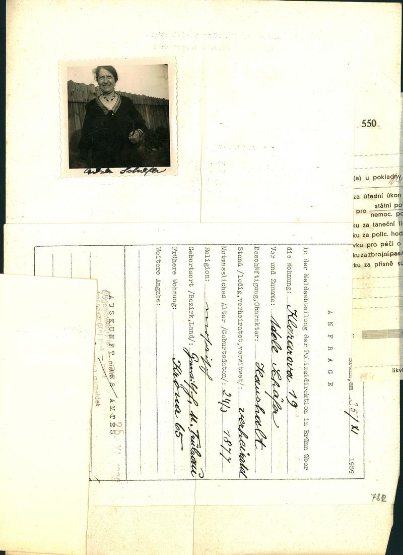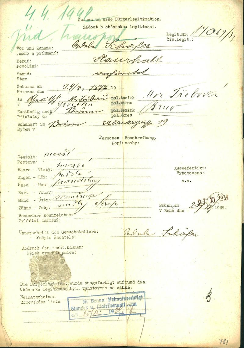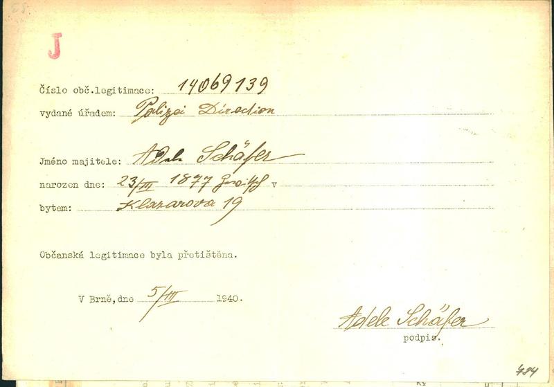 Moravský zemský archiv Brno > Policejní ředitelství Brno > Žádosti židovských občanů určených k transportu o občanské legitimace > Schäferová Adéla