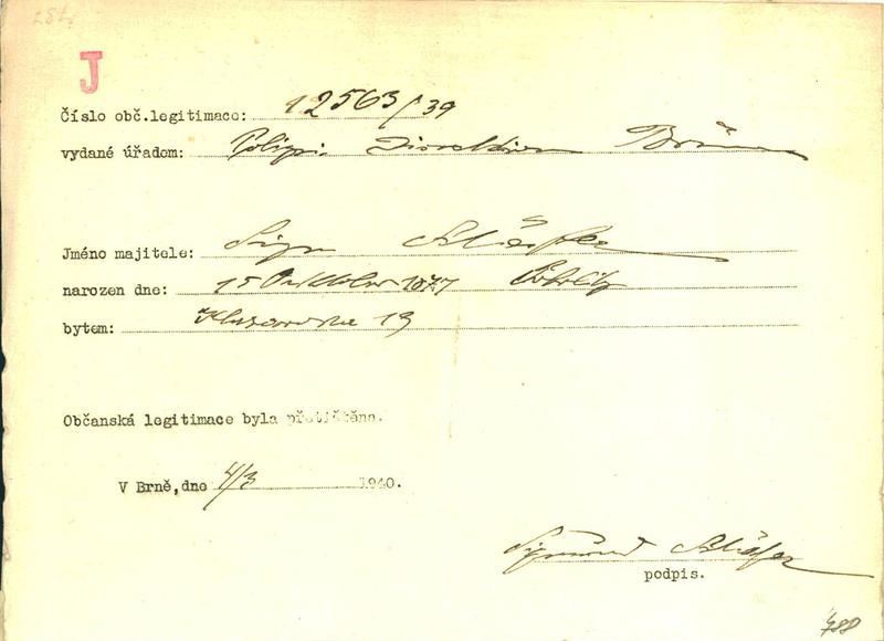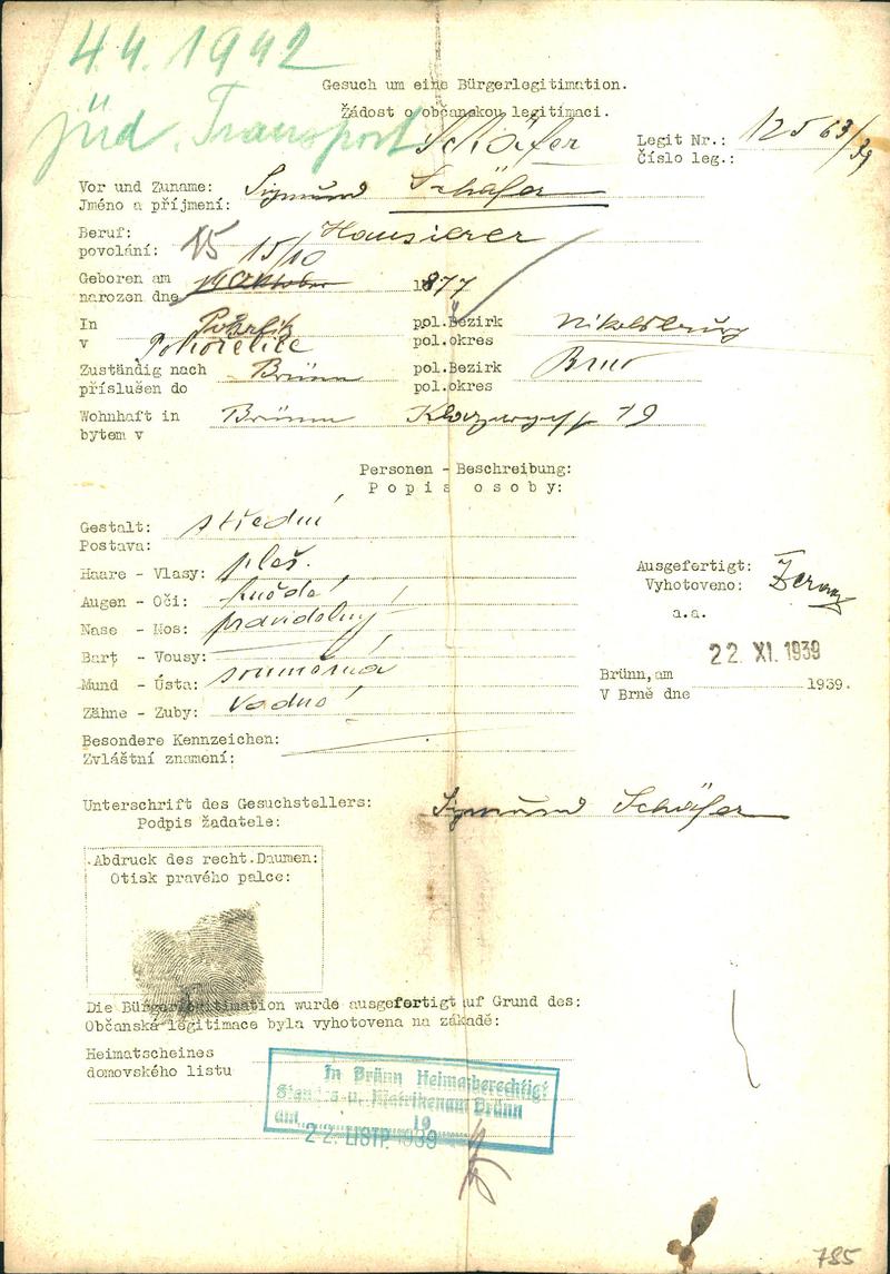 Moravský zemský archiv Brno > Policejní ředitelství Brno > Žádosti židovských občanů určených k transportu o občanské legitimace > Schäfer Zikmund