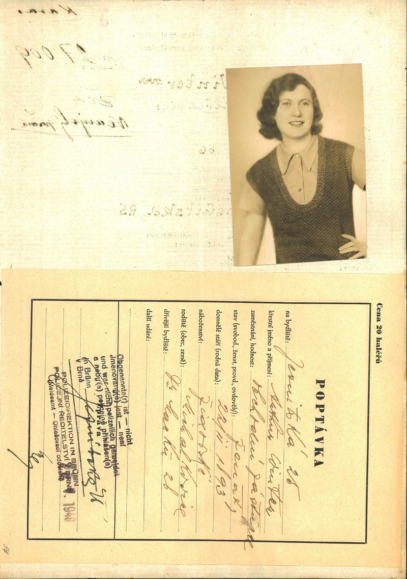 Moravský zemský archiv Brno > Policejní ředitelství Brno > Žádosti židovských občanů určených k transportu o občanské legitimace > Winterová Herta