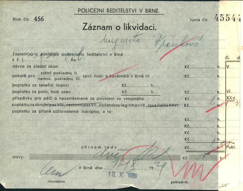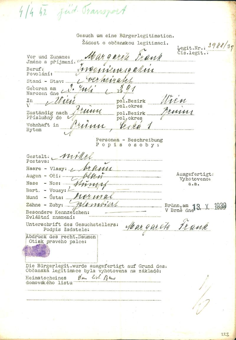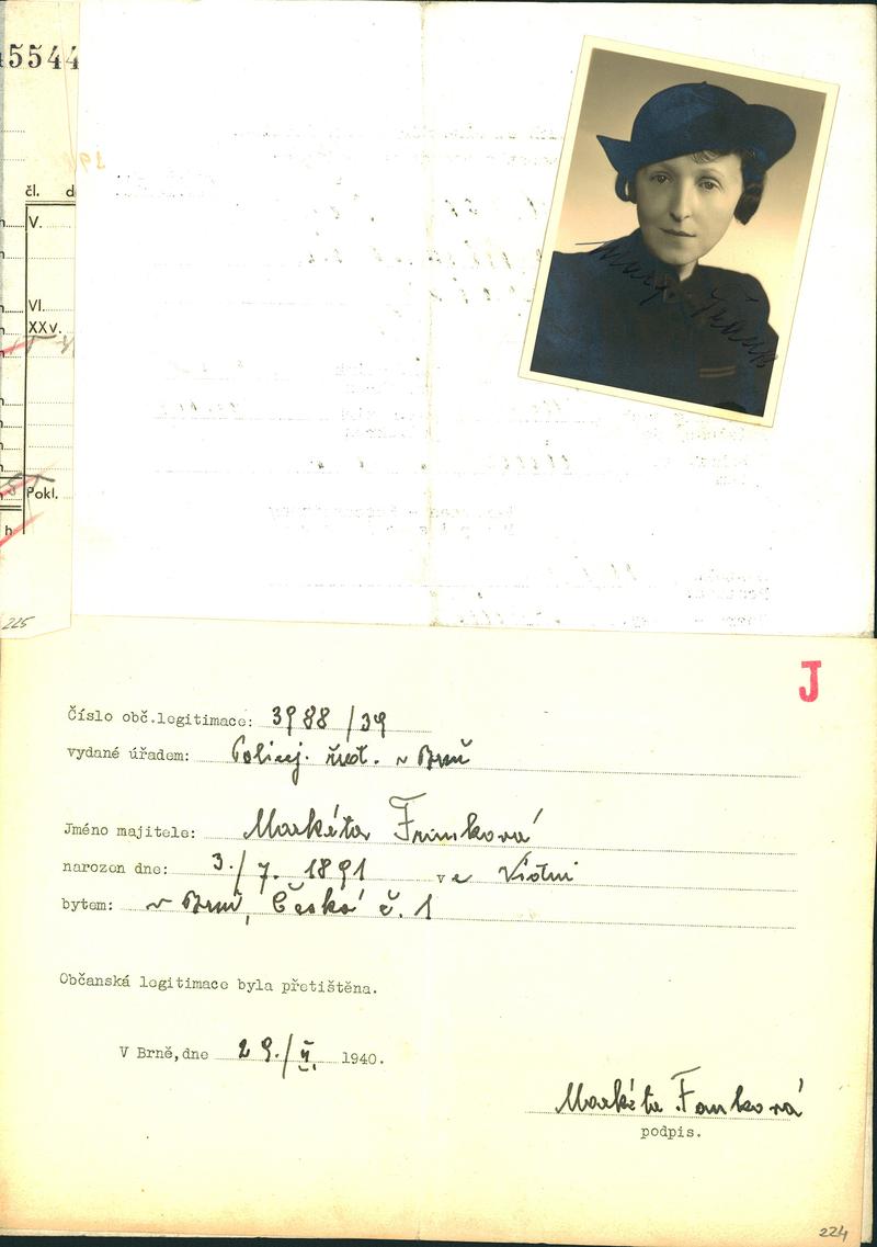 Moravský zemský archiv Brno > Policejní ředitelství Brno > Žádosti židovských občanů určených k transportu o občanské legitimace > Franková Markéta