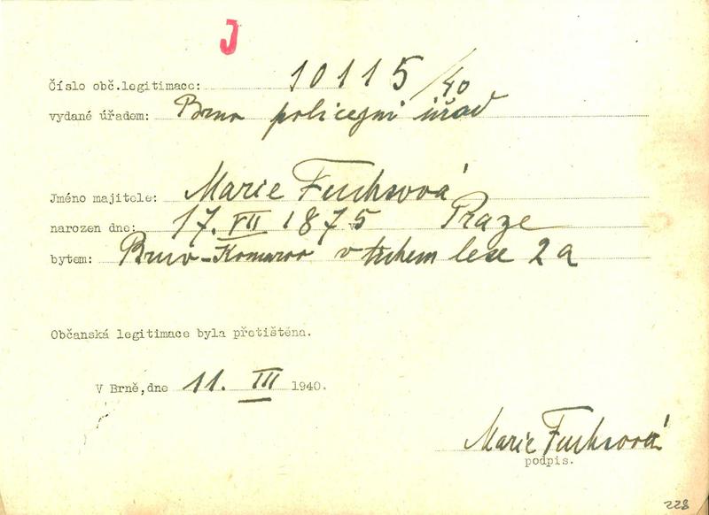 Moravský zemský archiv Brno > Policejní ředitelství Brno > Žádosti židovských občanů určených k transportu o občanské legitimace > Fuchsová Marie