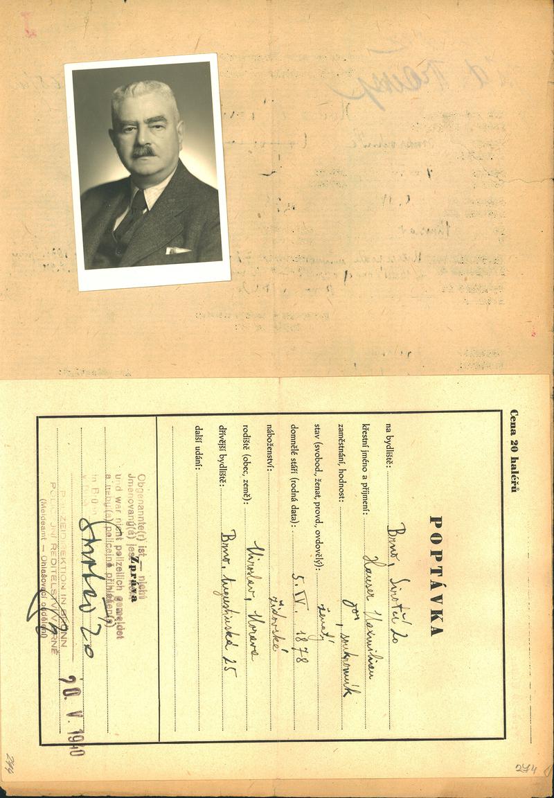 Moravský zemský archiv Brno > Policejní ředitelství Brno > Žádosti židovských občanů určených k transportu o občanské legitimace > Hauser Maxmilian