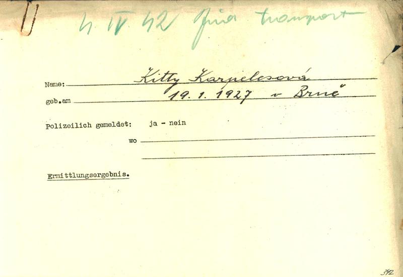 Moravský zemský archiv Brno > Policejní ředitelství Brno > Žádosti židovských občanů určených k transportu o občanské legitimace > Karpelesová Kity