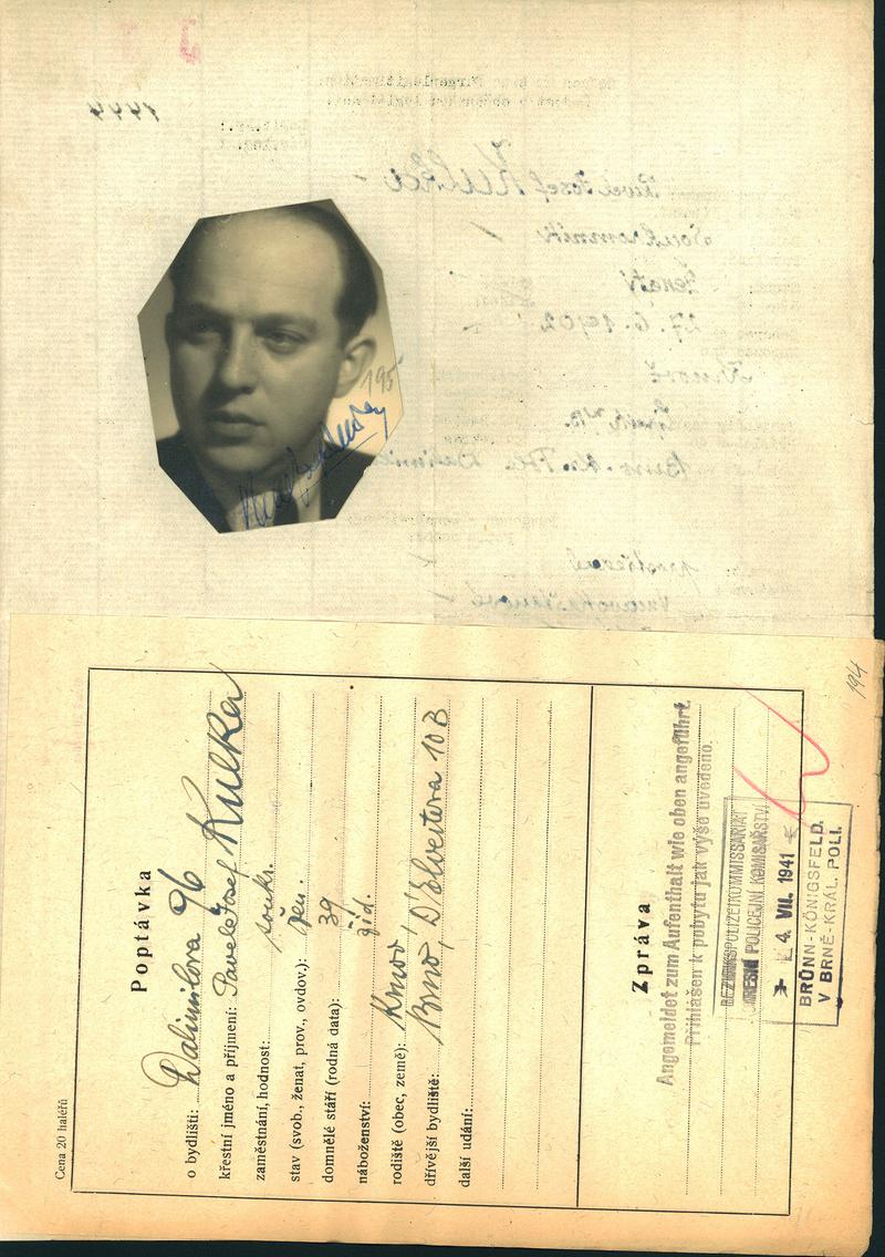 Moravský zemský archiv Brno > Policejní ředitelství Brno > Dodatky > Žádosti židovských občanů určených k transportu o občanské legitimace > Kulka Pavel
