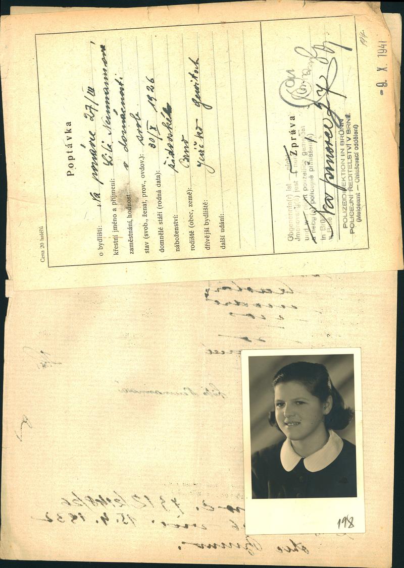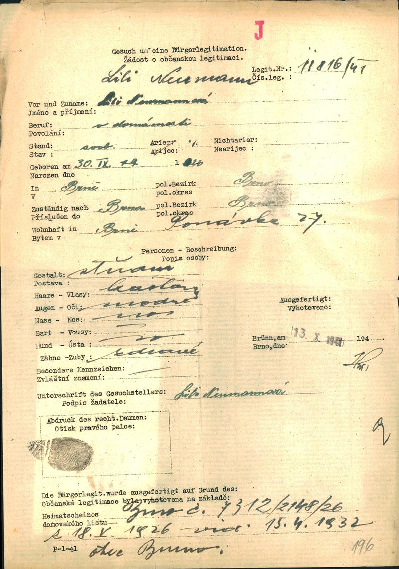 Moravský zemský archiv Brno > Policejní ředitelství Brno > Dodatky > Žádosti židovských občanů určených k transportu o občanské legitimace > Neumannová Lily