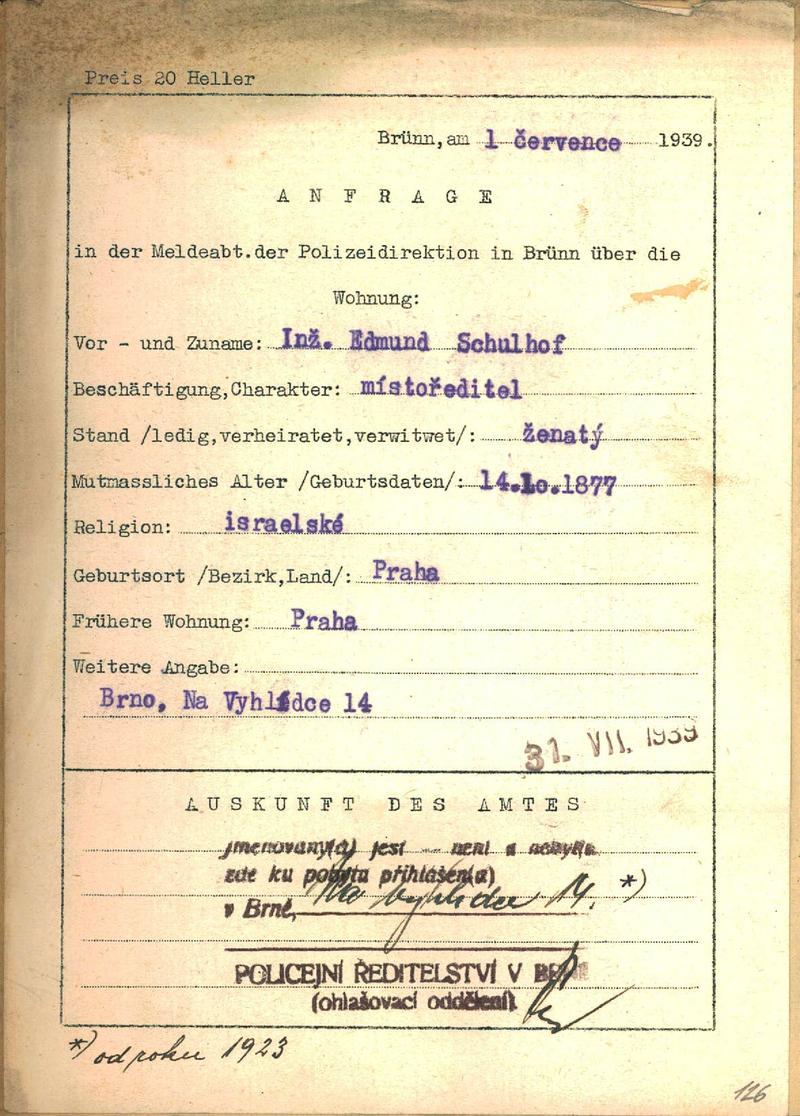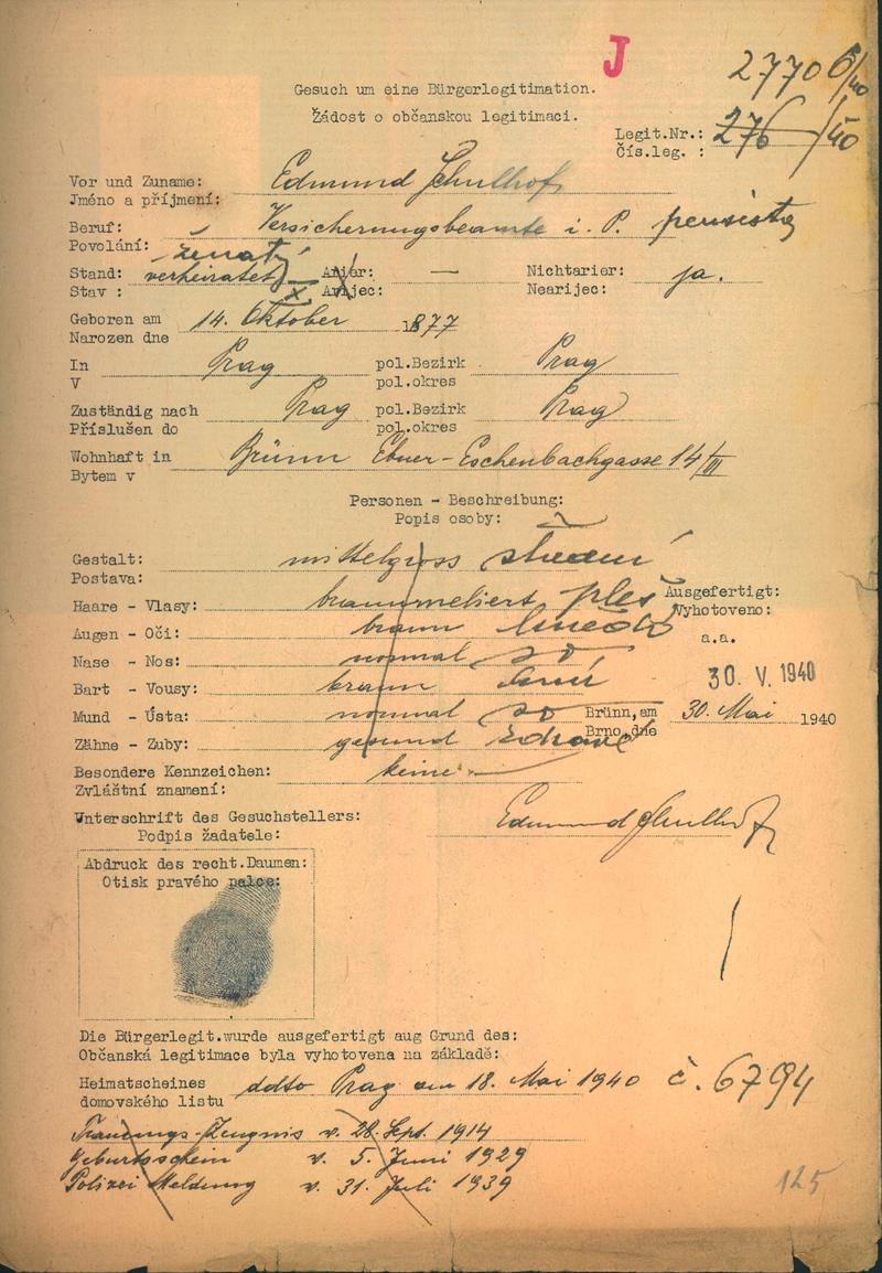 Moravský zemský archiv Brno > Policejní ředitelství Brno > Dodatky > Žádosti židovských občanů určených k transportu o občanské legitimace > Schulhof Edmund