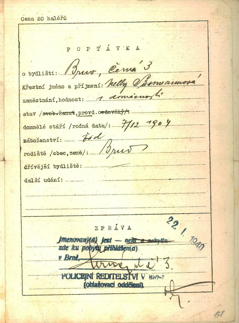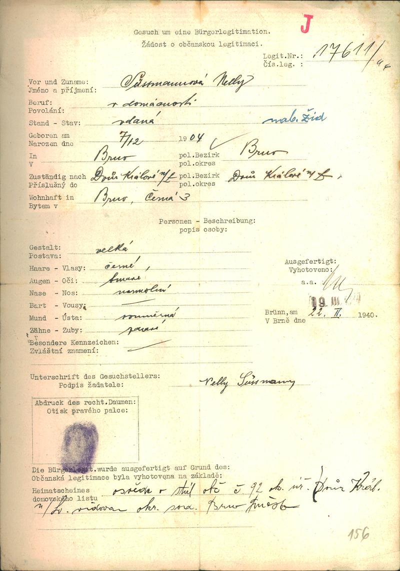 Moravský zemský archiv Brno > Policejní ředitelství Brno > Dodatky > Žádosti židovských občanů určených k transportu o občanské legitimace > Süssmannová Nelly