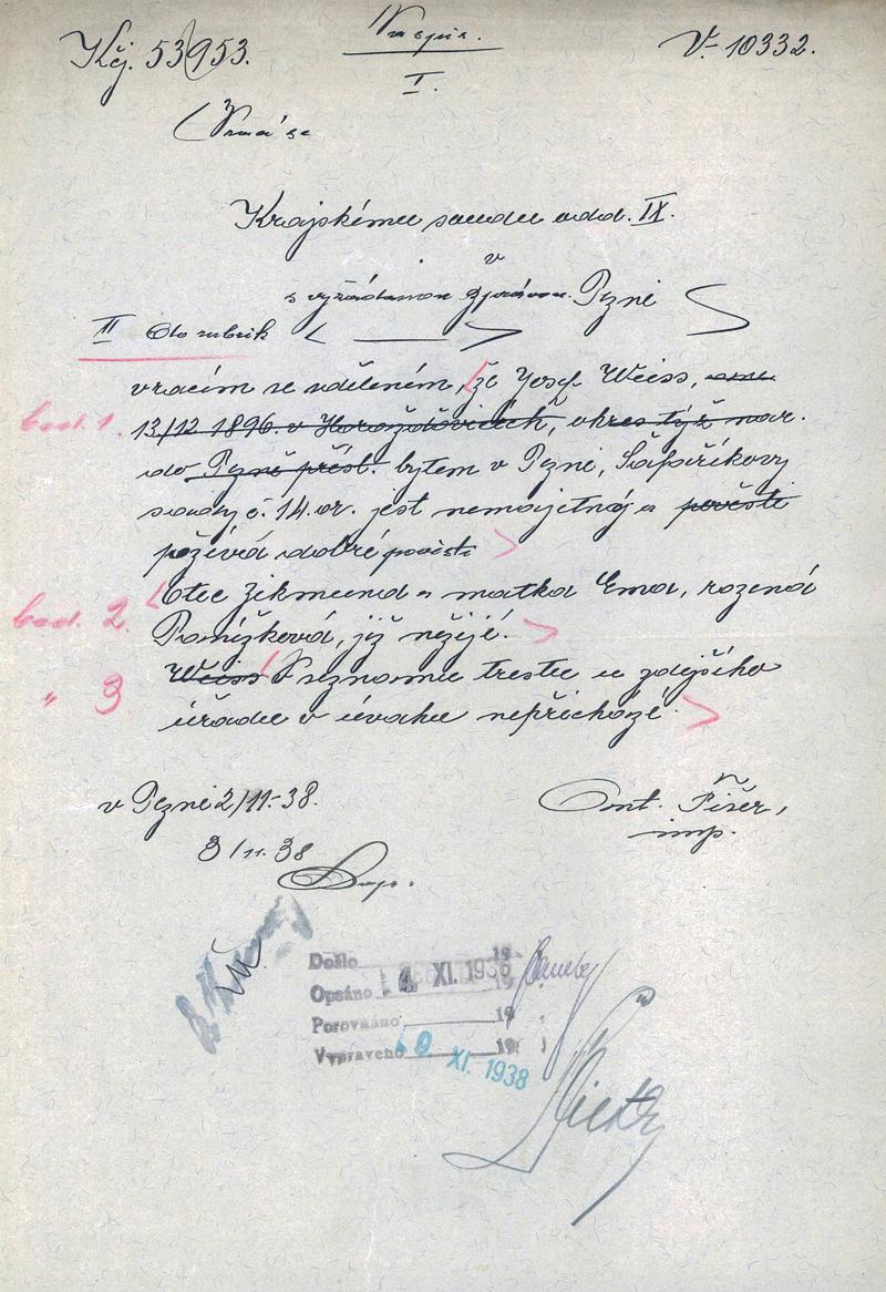 State Regional Archives in Pilsen > Police Directorate Pilsen > 1918-1951 > V > Weiss Josef