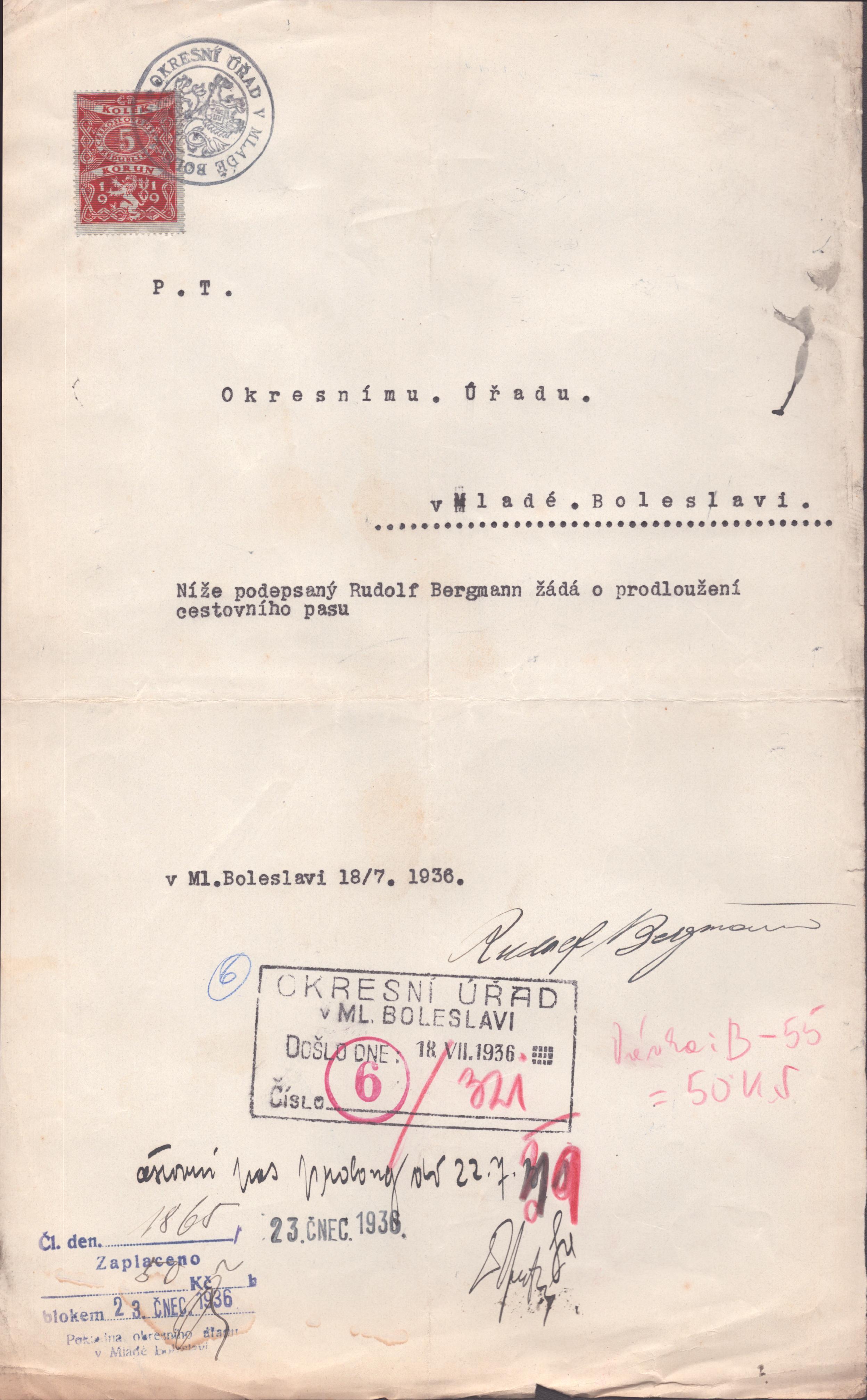 Bergmann Rudolf: Žádost o prodloužení cestovního pasu