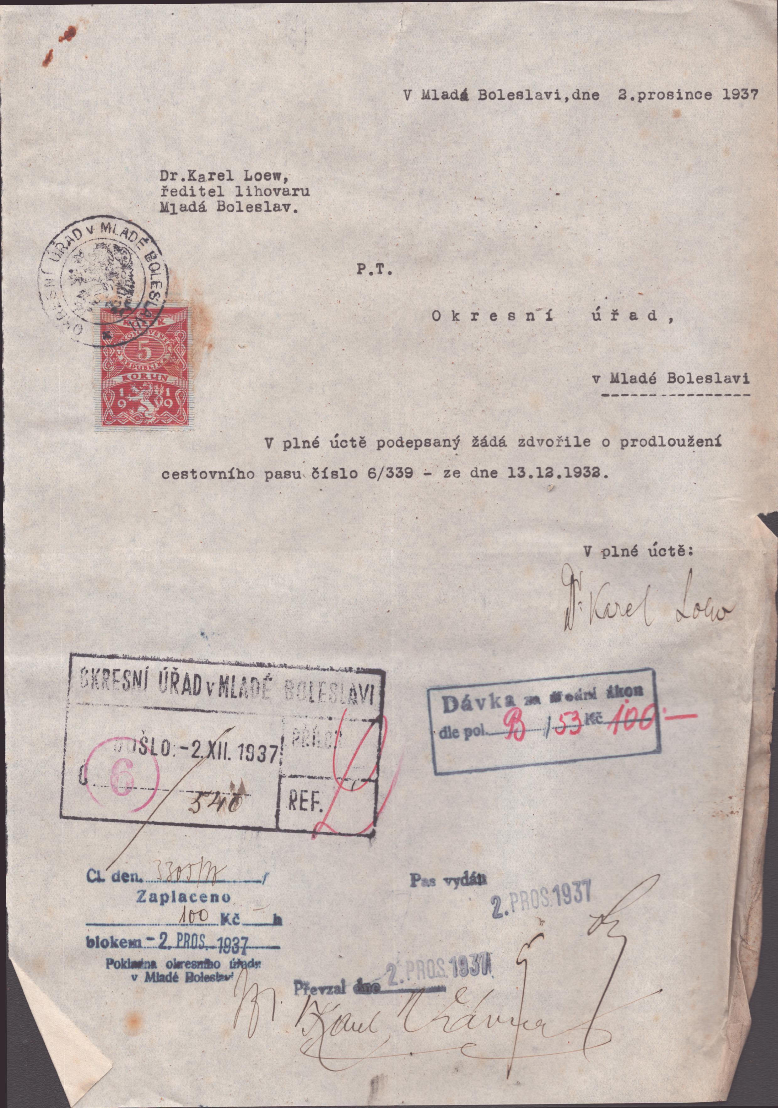 Löw Karel: Žádost o prodloužení cestovního pasu