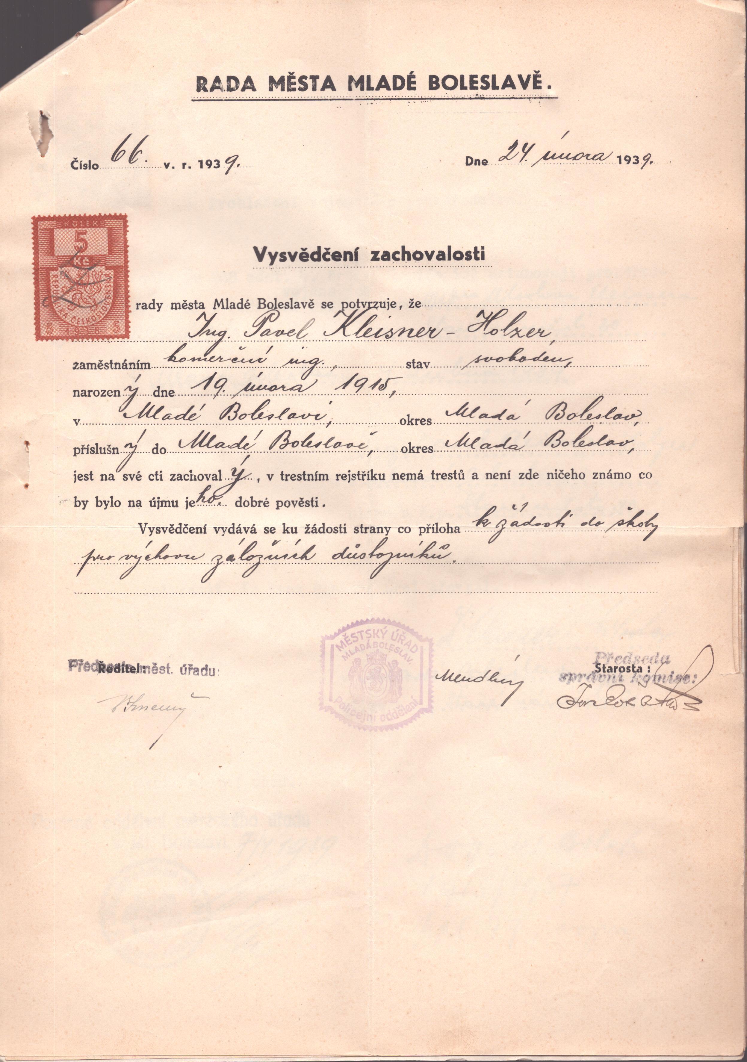 Kleisner-Holzer Pavel: Vysvědčení zachovalosti
