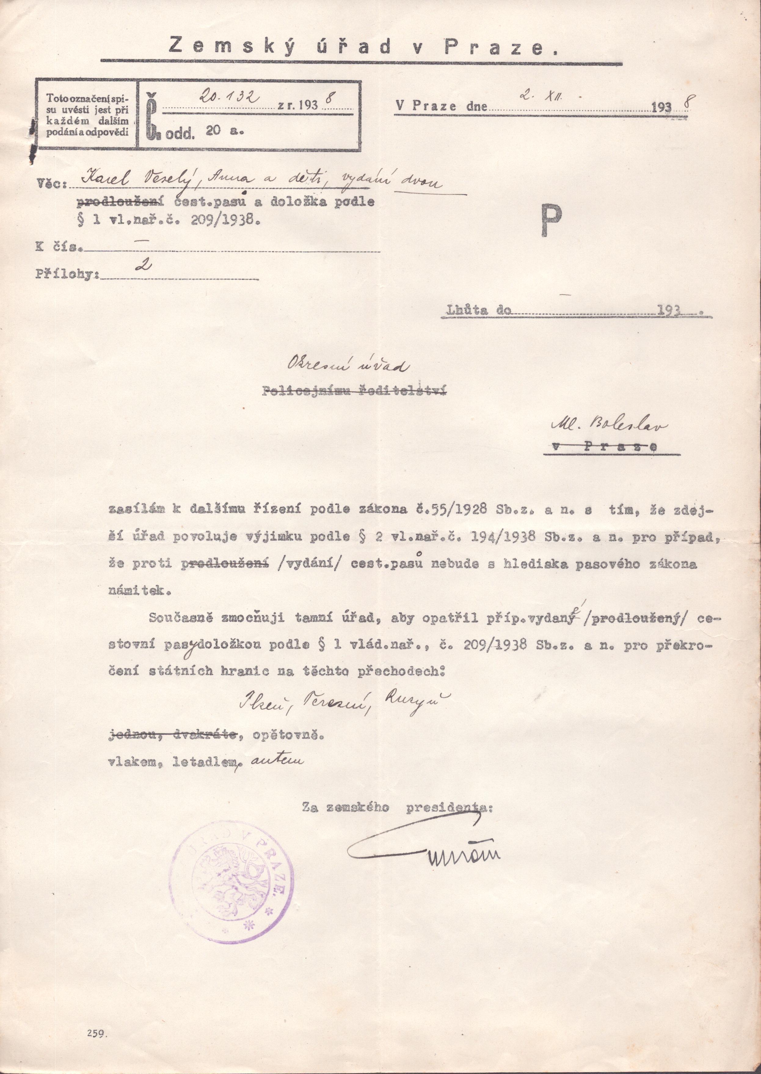 Veselý, Karel: Vyjádření k žádostí o vystavení cestovního pasu