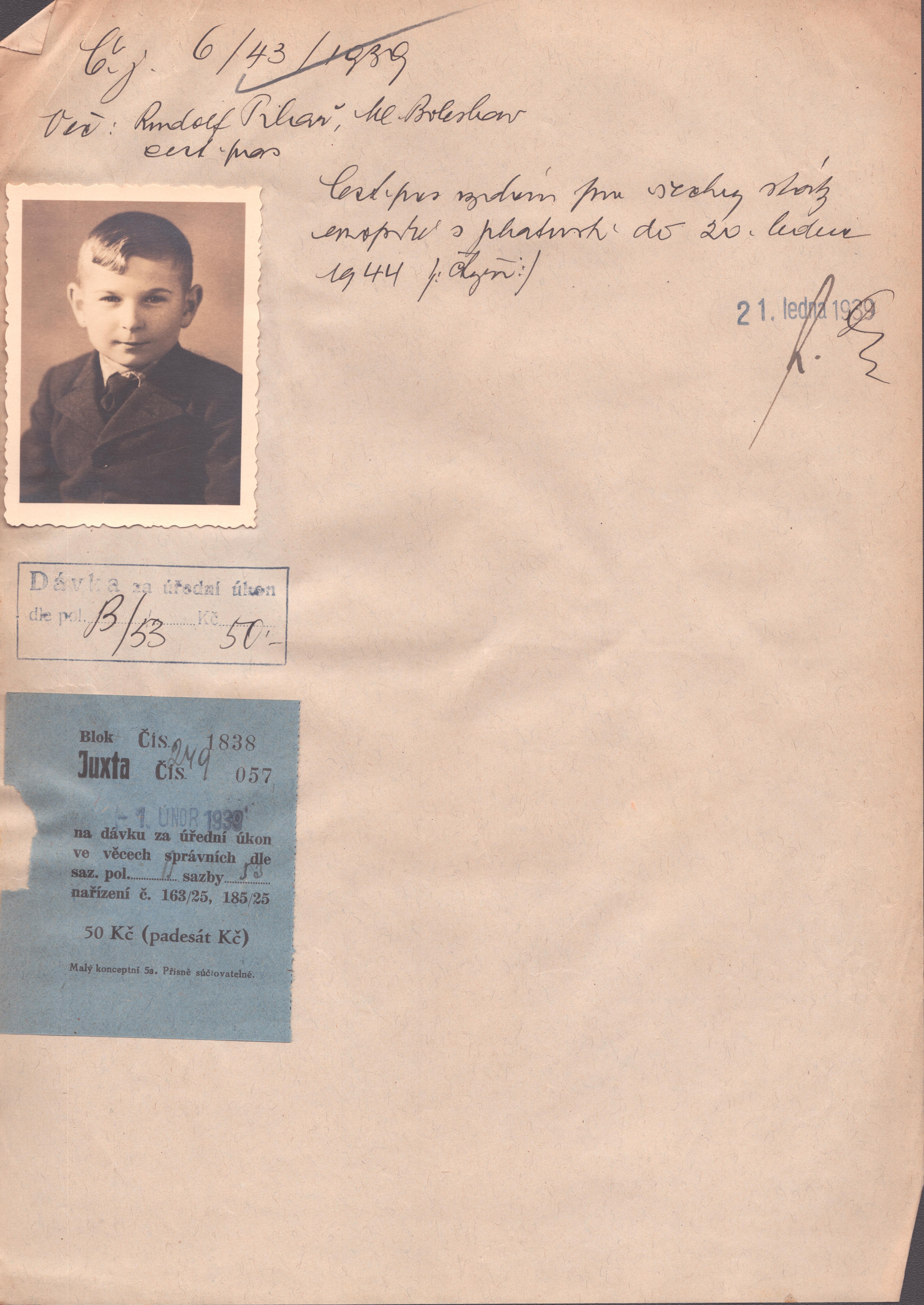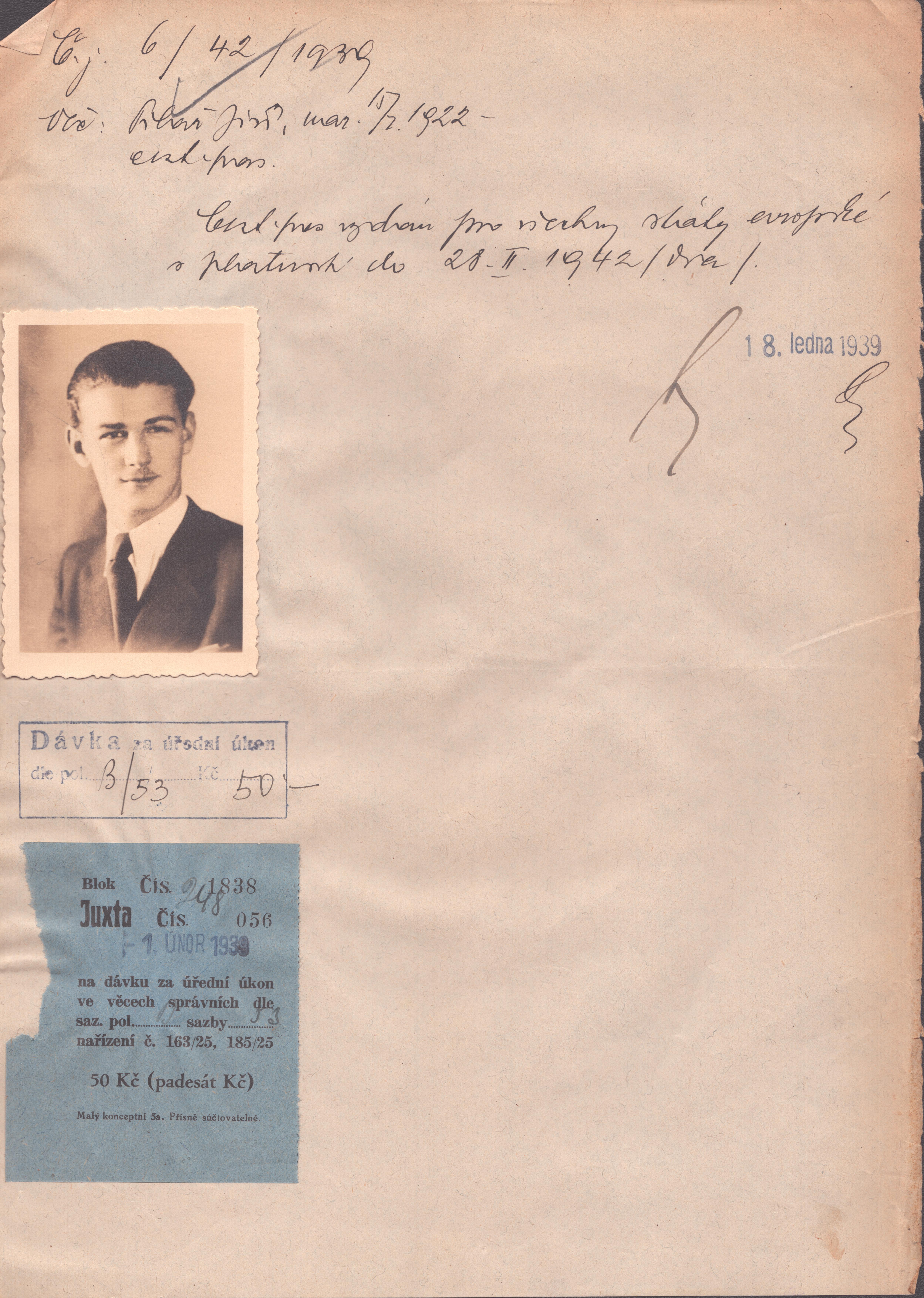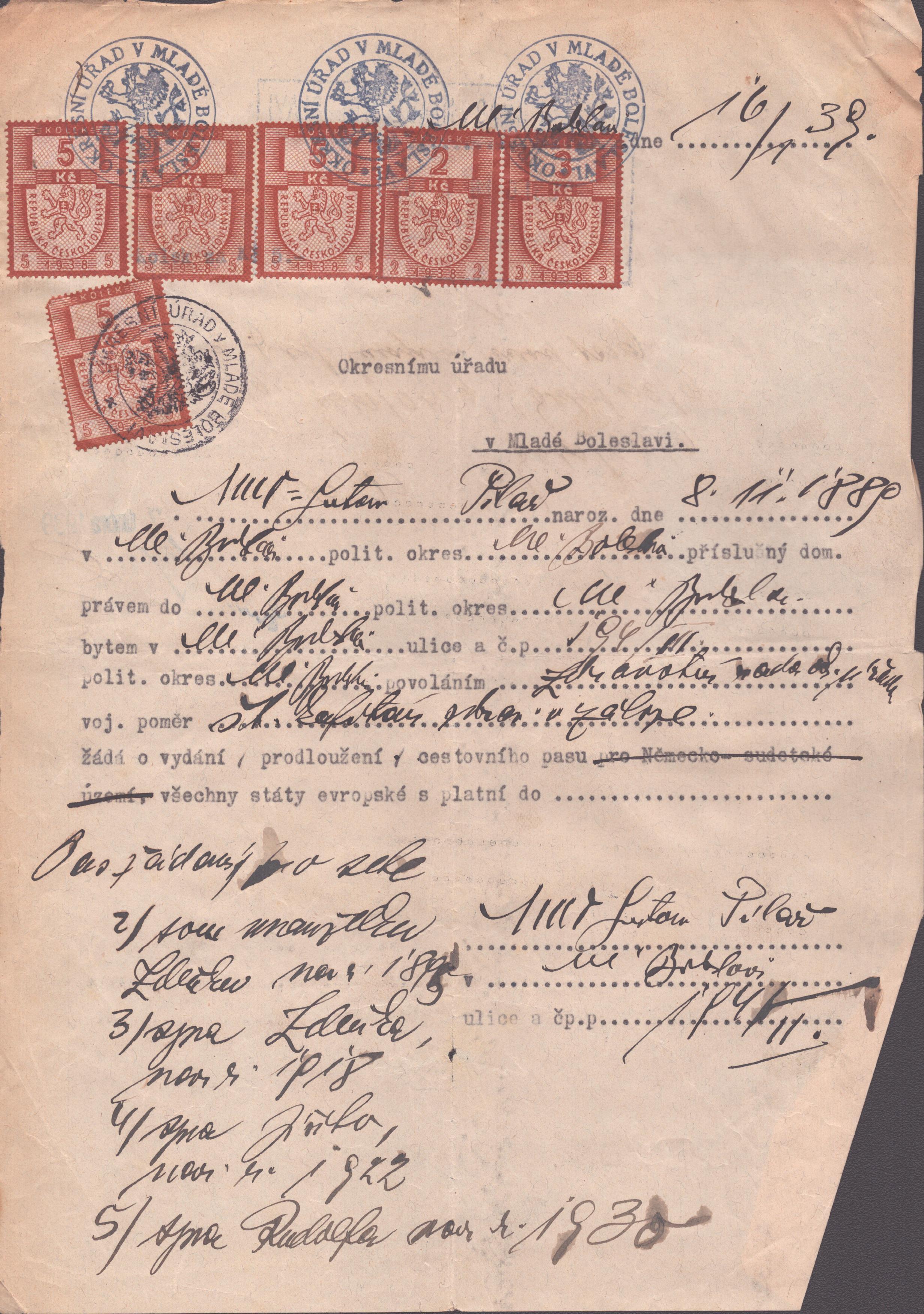 Pilař Gustav: Žádost o vystavení cestovního pasu