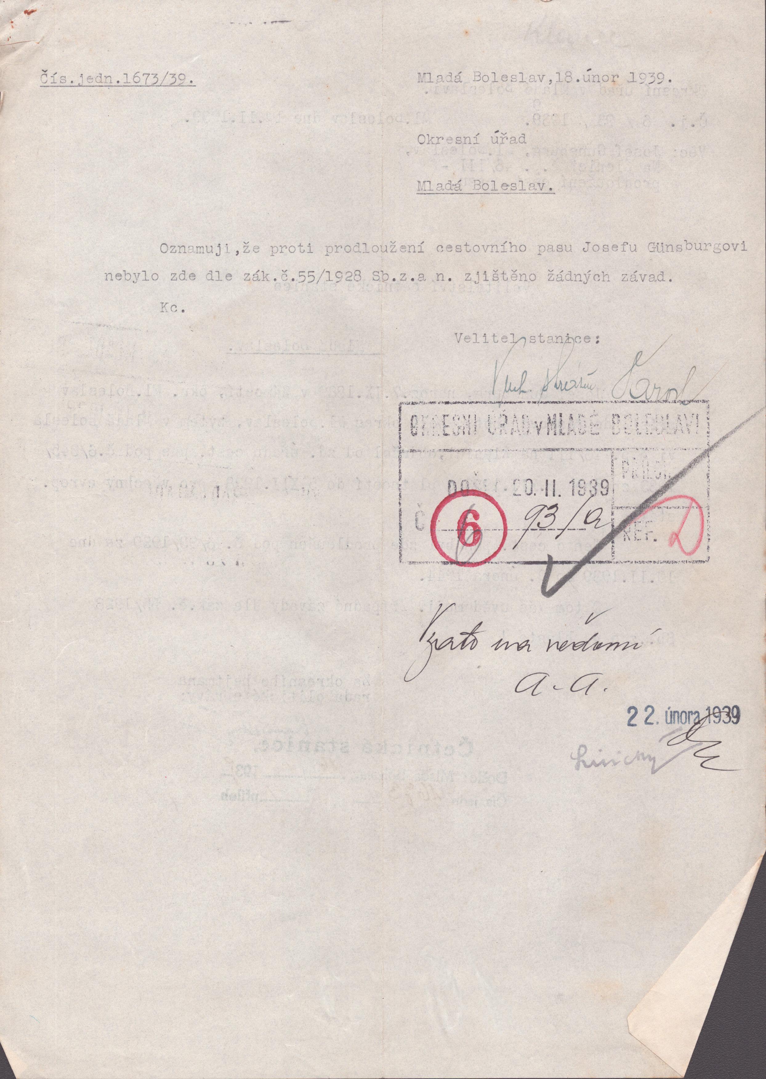 Günsburg Josef: Souhlas s prodloužením cestovního pasu