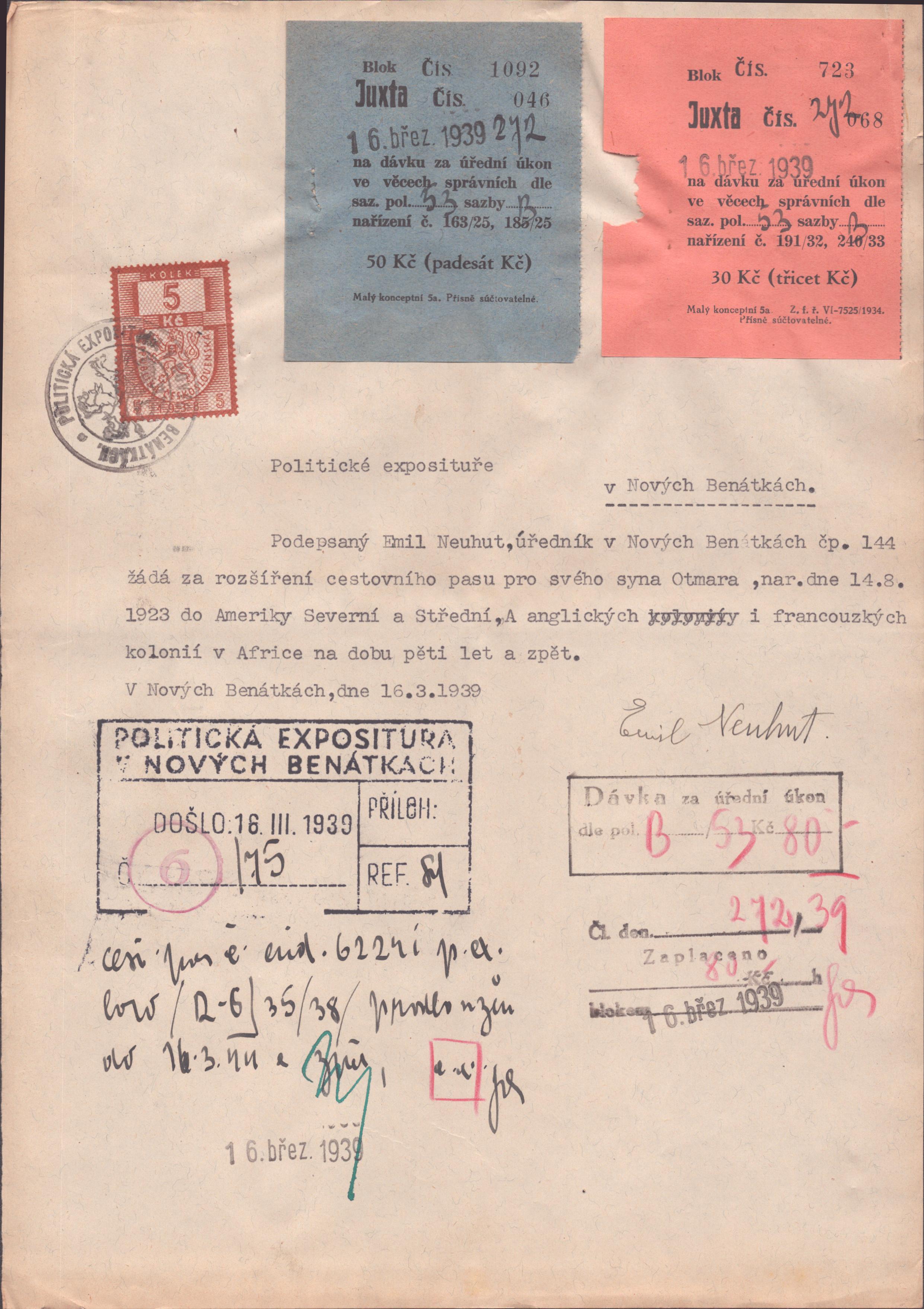 Neuhut Otmar: Žádost o rozšíření cestovního pasu