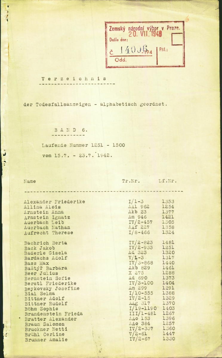 National archives Prague > Židovské matriky > Ohledací listy - ghetto Terezín > Svazek 6