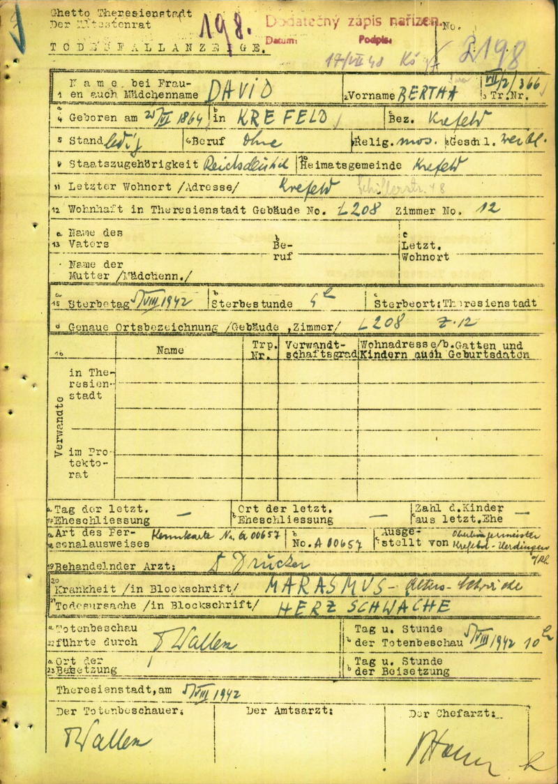 This database contains the names and fates of those who were deported from the territory of today’s Czech Republic, be it their homeland or may they have been deported to the Theresienstadt ghetto before from different european countries. Further, it contains basic information on those men, women and children, most of whom were Roma or Sinti, who died as prisoners of the so-called „Gypsy camp I“ Lety u Písku.