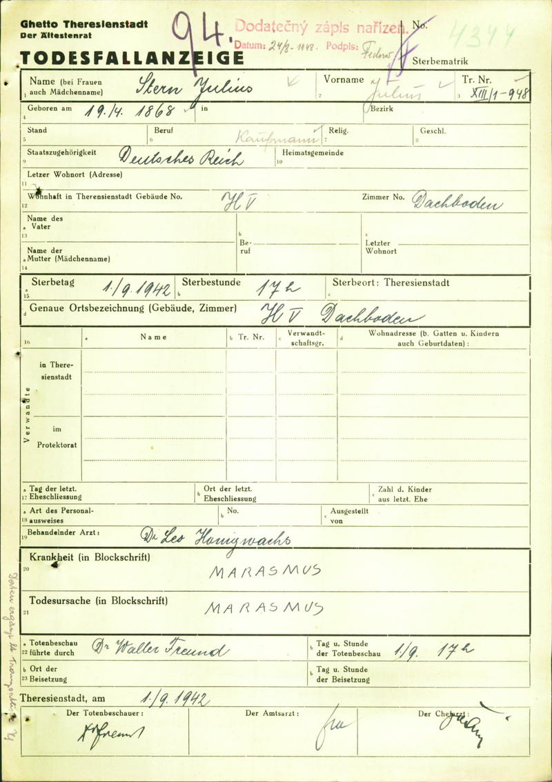 This database contains the names and fates of those who were deported from the territory of today’s Czech Republic, be it their homeland or may they have been deported to the Theresienstadt ghetto before from different european countries. Further, it contains basic information on those men, women and children, most of whom were Roma or Sinti, who died as prisoners of the so-called „Gypsy camp I“ Lety u Písku.