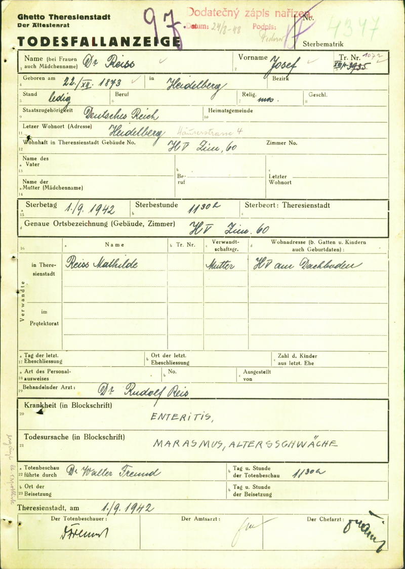 This database contains the names and fates of those who were deported from the territory of today’s Czech Republic, be it their homeland or may they have been deported to the Theresienstadt ghetto before from different european countries. Further, it contains basic information on those men, women and children, most of whom were Roma or Sinti, who died as prisoners of the so-called „Gypsy camp I“ Lety u Písku.