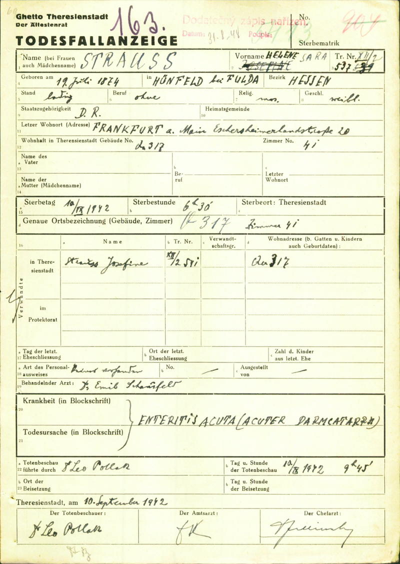 National archives Prague > Židovské matriky > Ohledací listy - ghetto Terezín > Svazek 22