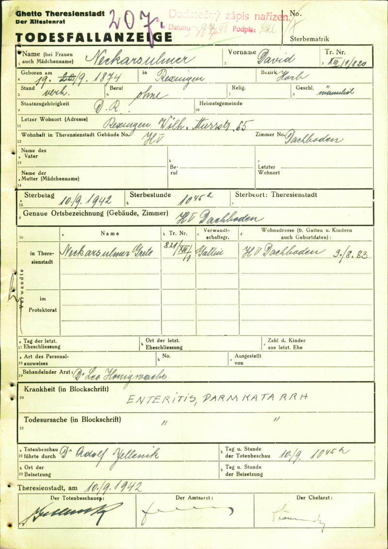 Neckarsulmer David: Death certificate, Ghetto Terezín