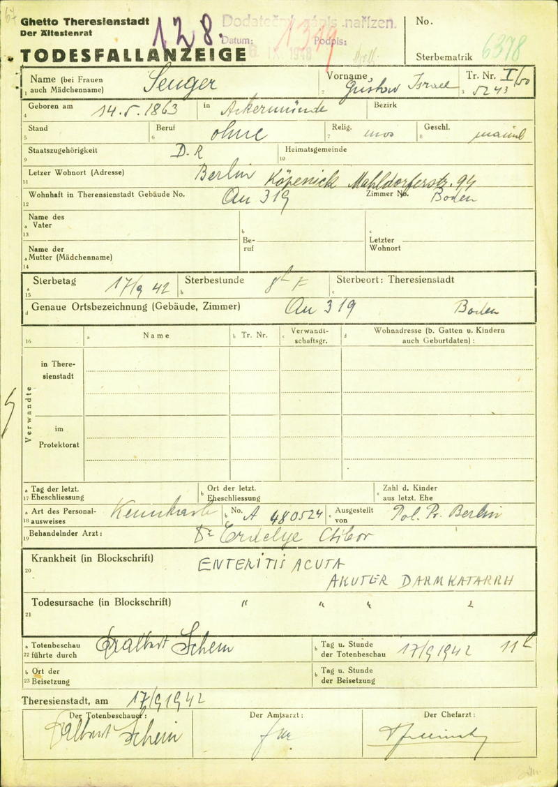 This database contains the names and fates of those who were deported from the territory of today’s Czech Republic, be it their homeland or may they have been deported to the Theresienstadt ghetto before from different european countries. Further, it contains basic information on those men, women and children, most of whom were Roma or Sinti, who died as prisoners of the so-called „Gypsy camp I“ Lety u Písku.