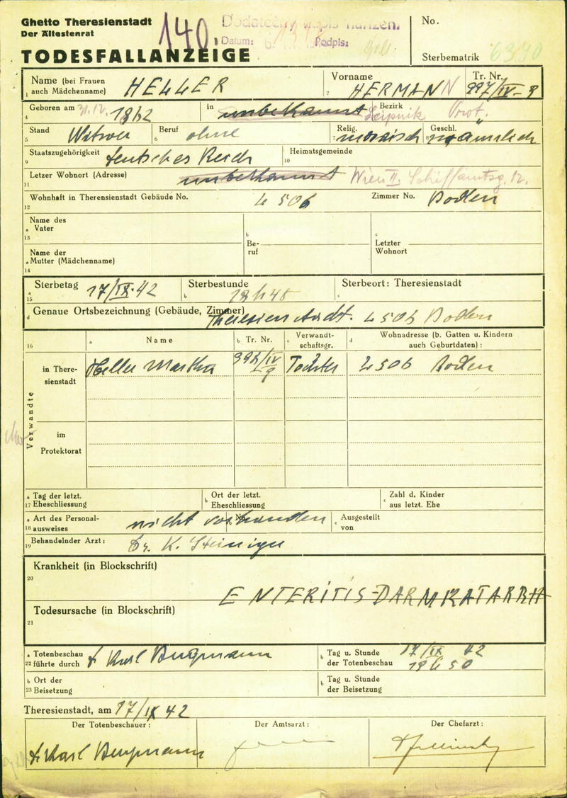 This database contains the names and fates of those who were deported from the territory of today’s Czech Republic, be it their homeland or may they have been deported to the Theresienstadt ghetto before from different european countries. Further, it contains basic information on those men, women and children, most of whom were Roma or Sinti, who died as prisoners of the so-called „Gypsy camp I“ Lety u Písku.