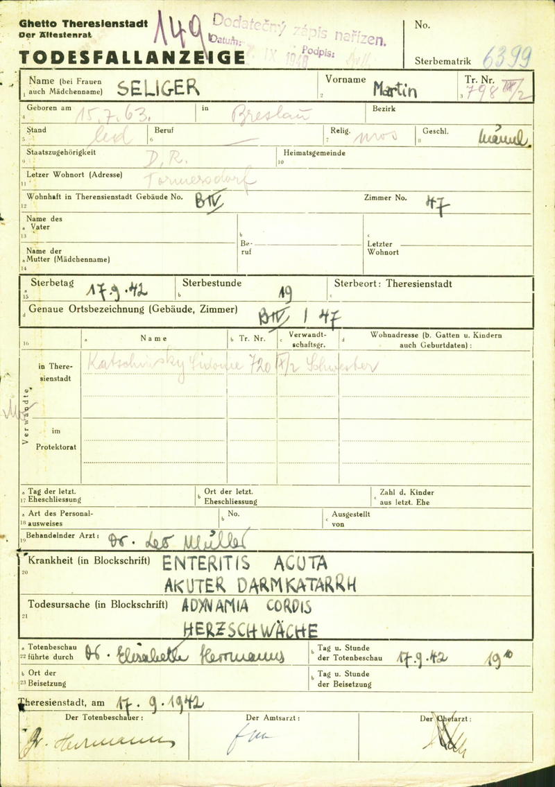 This database contains the names and fates of those who were deported from the territory of today’s Czech Republic, be it their homeland or may they have been deported to the Theresienstadt ghetto before from different european countries. Further, it contains basic information on those men, women and children, most of whom were Roma or Sinti, who died as prisoners of the so-called „Gypsy camp I“ Lety u Písku.