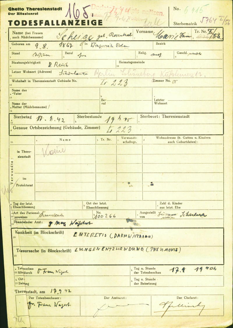 This database contains the names and fates of those who were deported from the territory of today’s Czech Republic, be it their homeland or may they have been deported to the Theresienstadt ghetto before from different european countries. Further, it contains basic information on those men, women and children, most of whom were Roma or Sinti, who died as prisoners of the so-called „Gypsy camp I“ Lety u Písku.