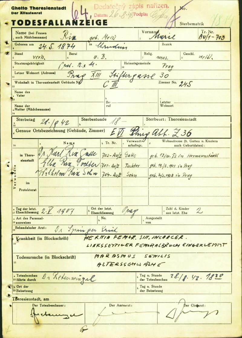 This database contains the names and fates of those who were deported from the territory of today’s Czech Republic, be it their homeland or may they have been deported to the Theresienstadt ghetto before from different european countries. Further, it contains basic information on those men, women and children, most of whom were Roma or Sinti, who died as prisoners of the so-called „Gypsy camp I“ Lety u Písku.