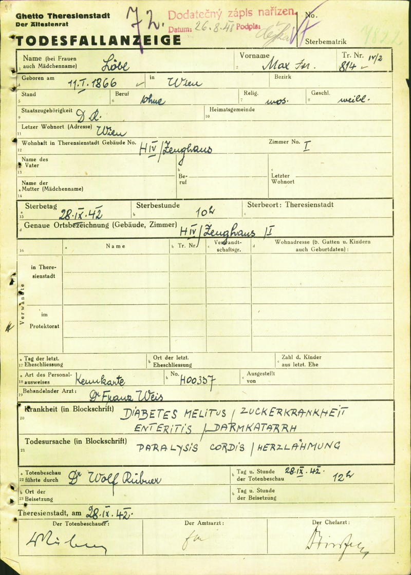 This database contains the names and fates of those who were deported from the territory of today’s Czech Republic, be it their homeland or may they have been deported to the Theresienstadt ghetto before from different european countries. Further, it contains basic information on those men, women and children, most of whom were Roma or Sinti, who died as prisoners of the so-called „Gypsy camp I“ Lety u Písku.