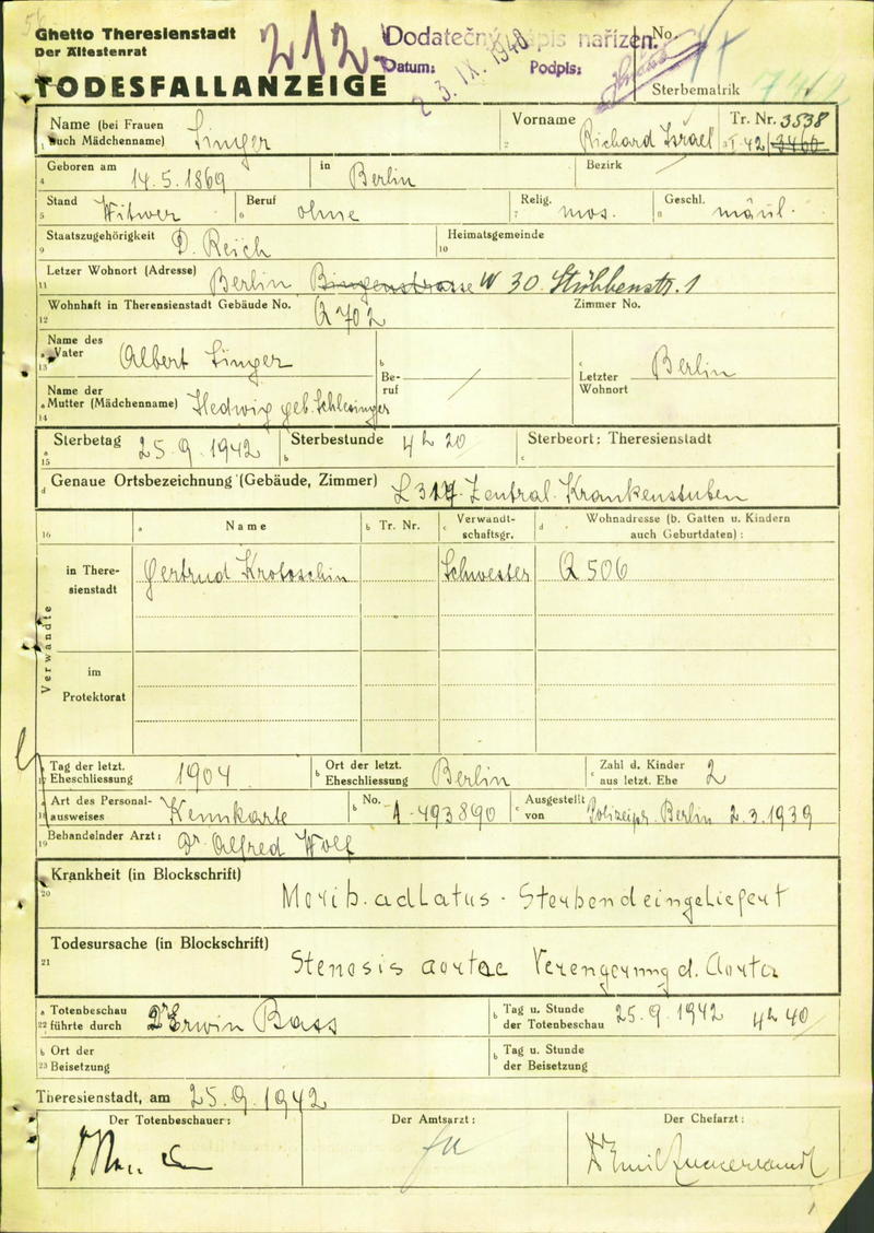 National archives Prague > Židovské matriky > Ohledací listy - ghetto Terezín > Svazek 30