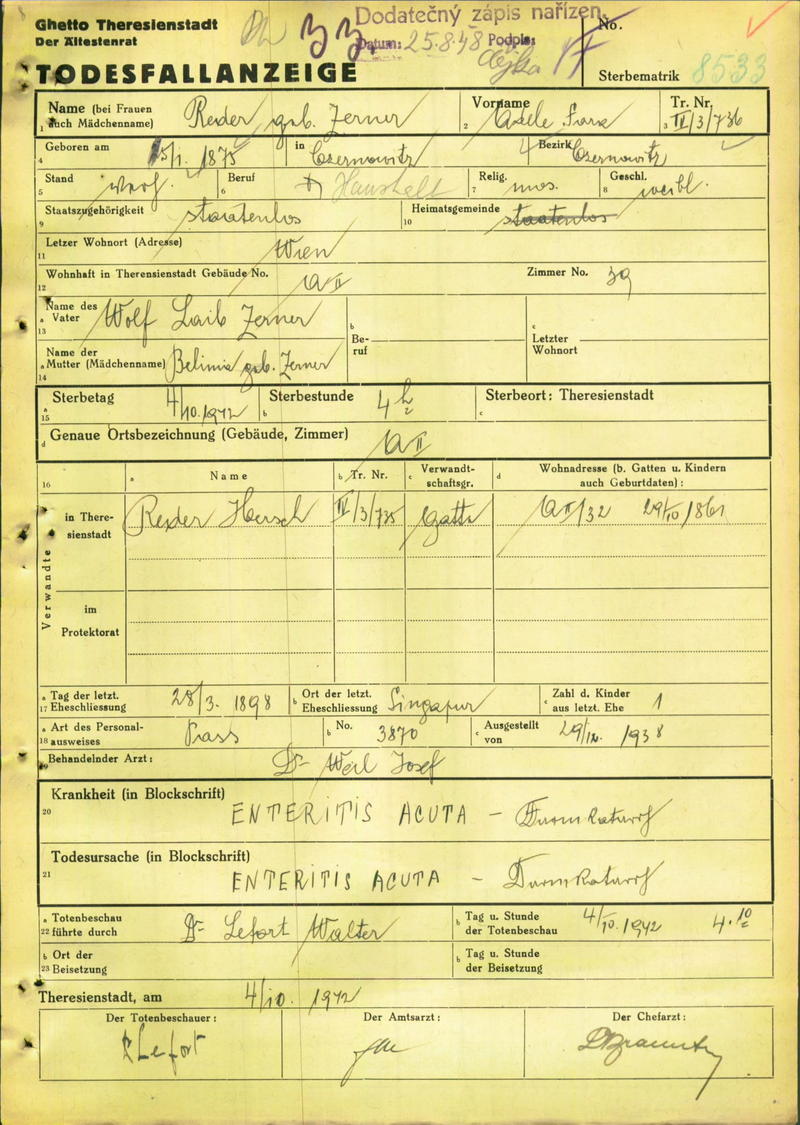 This database contains the names and fates of those who were deported from the territory of today’s Czech Republic, be it their homeland or may they have been deported to the Theresienstadt ghetto before from different european countries. Further, it contains basic information on those men, women and children, most of whom were Roma or Sinti, who died as prisoners of the so-called „Gypsy camp I“ Lety u Písku.