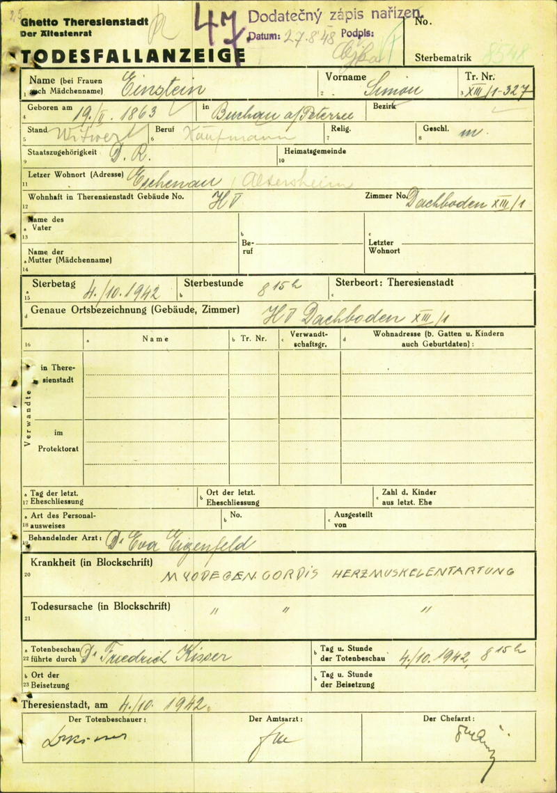 This database contains the names and fates of those who were deported from the territory of today’s Czech Republic, be it their homeland or may they have been deported to the Theresienstadt ghetto before from different european countries. Further, it contains basic information on those men, women and children, most of whom were Roma or Sinti, who died as prisoners of the so-called „Gypsy camp I“ Lety u Písku.