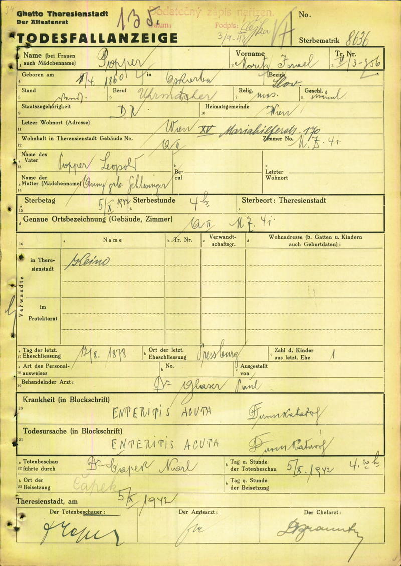 This database contains the names and fates of those who were deported from the territory of today’s Czech Republic, be it their homeland or may they have been deported to the Theresienstadt ghetto before from different european countries. Further, it contains basic information on those men, women and children, most of whom were Roma or Sinti, who died as prisoners of the so-called „Gypsy camp I“ Lety u Písku.