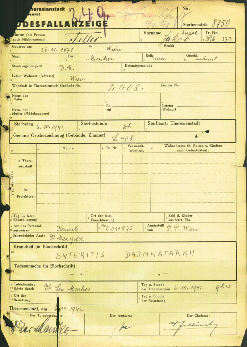 This database contains the names and fates of those who were deported from the territory of today’s Czech Republic, be it their homeland or may they have been deported to the Theresienstadt ghetto before from different european countries. Further, it contains basic information on those men, women and children, most of whom were Roma or Sinti, who died as prisoners of the so-called „Gypsy camp I“ Lety u Písku.