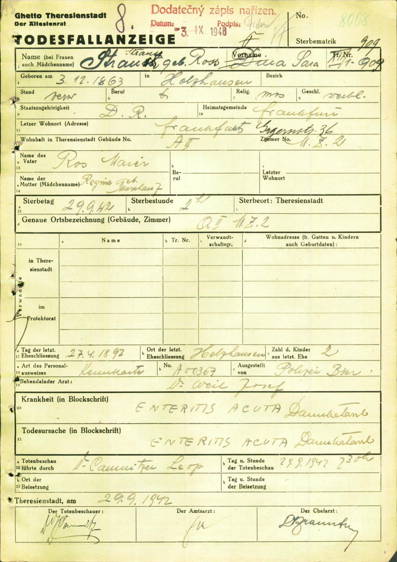 This database contains the names and fates of those who were deported from the territory of today’s Czech Republic, be it their homeland or may they have been deported to the Theresienstadt ghetto before from different european countries. Further, it contains basic information on those men, women and children, most of whom were Roma or Sinti, who died as prisoners of the so-called „Gypsy camp I“ Lety u Písku.