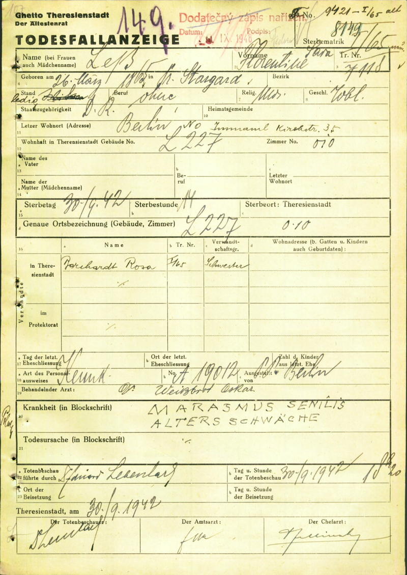 Less Florentine: Death certificate, Ghetto Terezín