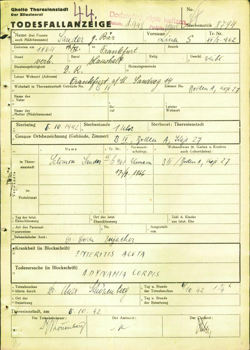 This database contains the names and fates of those who were deported from the territory of today’s Czech Republic, be it their homeland or may they have been deported to the Theresienstadt ghetto before from different european countries. Further, it contains basic information on those men, women and children, most of whom were Roma or Sinti, who died as prisoners of the so-called „Gypsy camp I“ Lety u Písku.