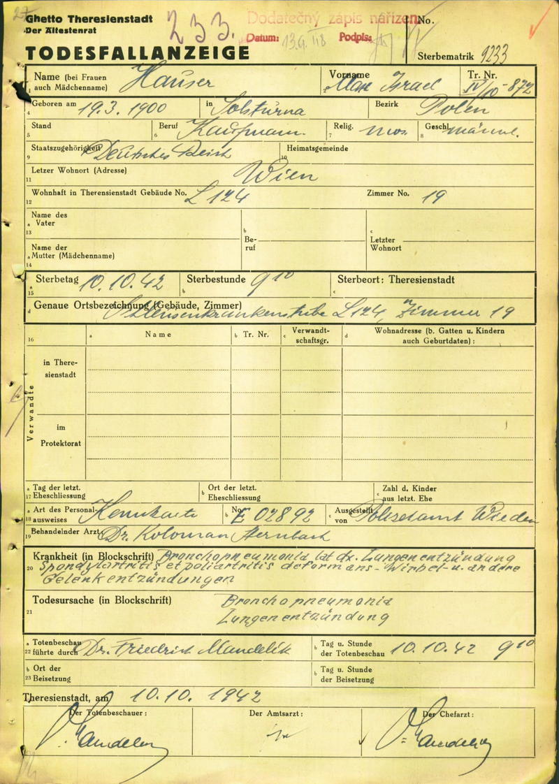 This database contains the names and fates of those who were deported from the territory of today’s Czech Republic, be it their homeland or may they have been deported to the Theresienstadt ghetto before from different european countries. Further, it contains basic information on those men, women and children, most of whom were Roma or Sinti, who died as prisoners of the so-called „Gypsy camp I“ Lety u Písku.