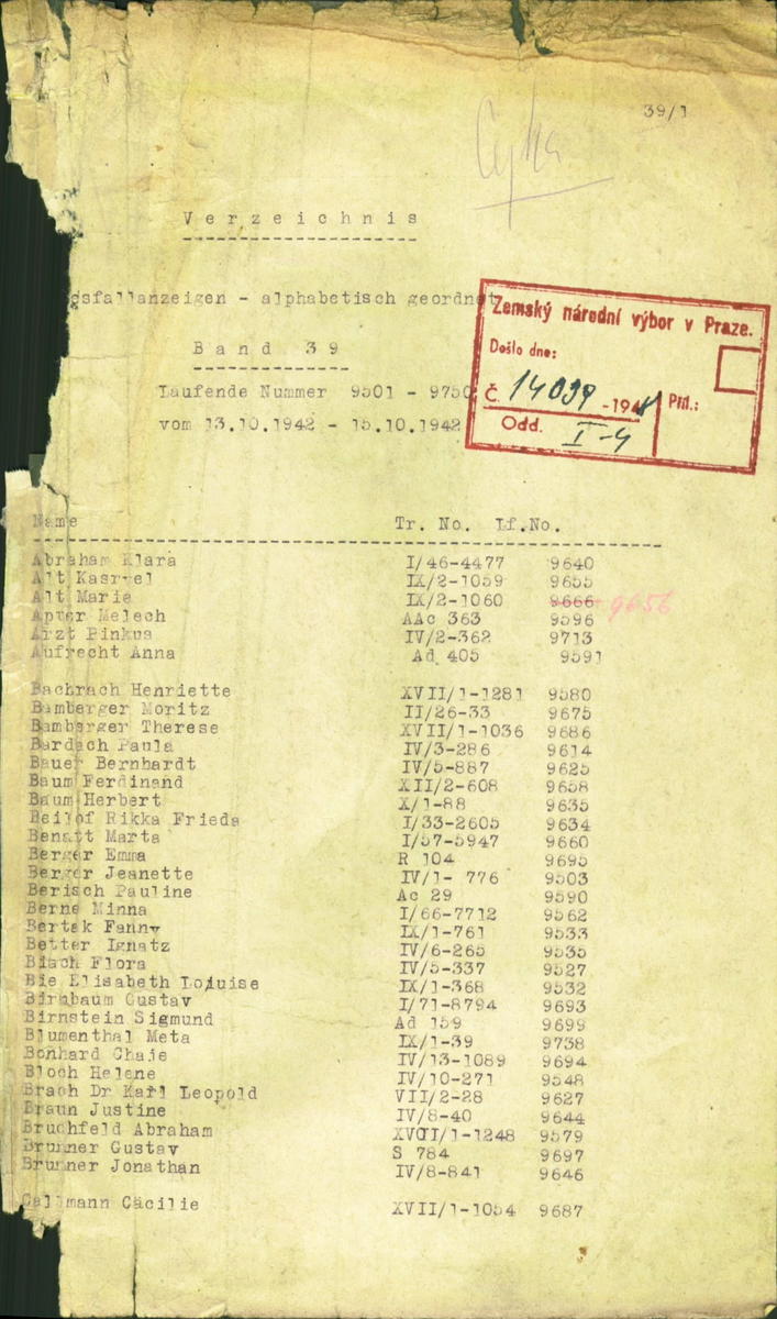National archives Prague > Židovské matriky > Ohledací listy - ghetto Terezín > Svazek 39