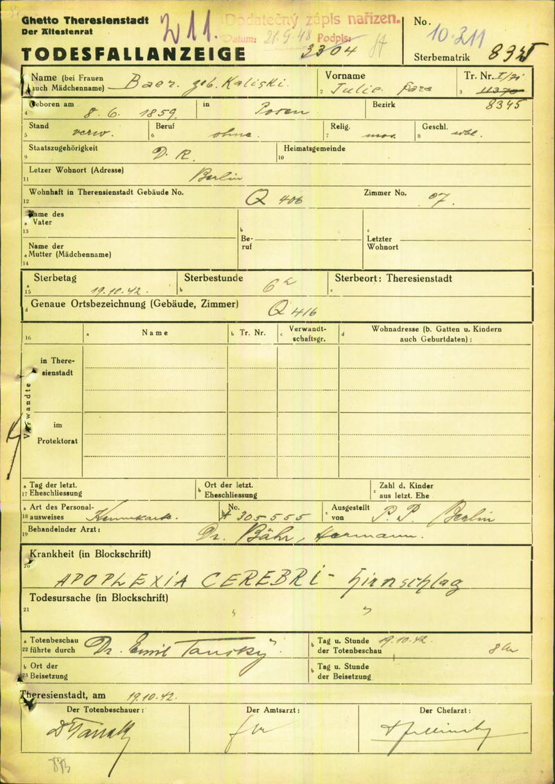 This database contains the names and fates of those who were deported from the territory of today’s Czech Republic, be it their homeland or may they have been deported to the Theresienstadt ghetto before from different european countries. Further, it contains basic information on those men, women and children, most of whom were Roma or Sinti, who died as prisoners of the so-called „Gypsy camp I“ Lety u Písku.