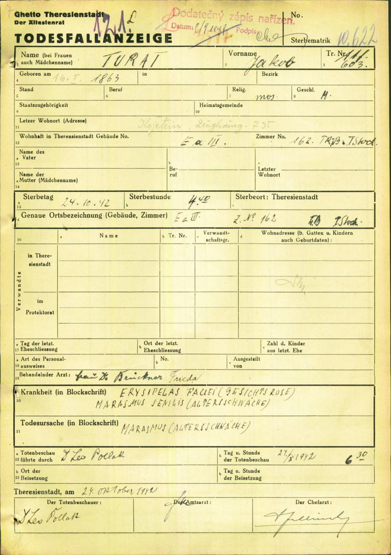 This database contains the names and fates of those who were deported from the territory of today’s Czech Republic, be it their homeland or may they have been deported to the Theresienstadt ghetto before from different european countries. Further, it contains basic information on those men, women and children, most of whom were Roma or Sinti, who died as prisoners of the so-called „Gypsy camp I“ Lety u Písku.
