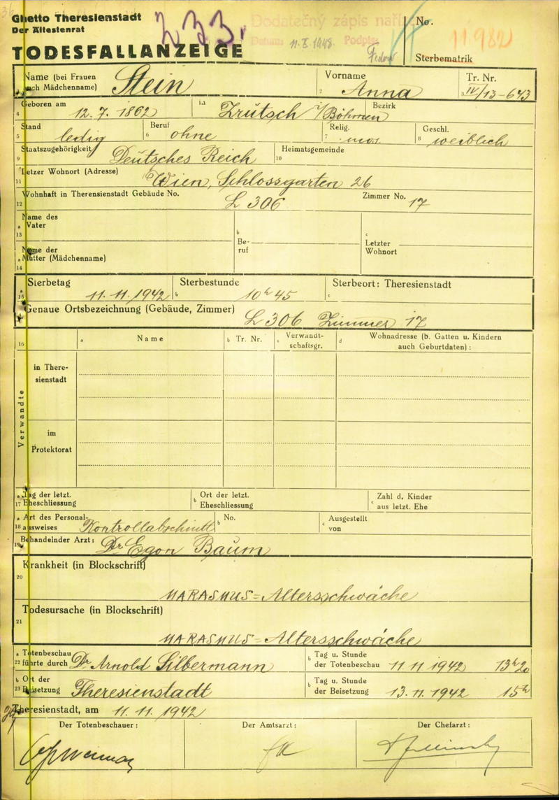 This database contains the names and fates of those who were deported from the territory of today’s Czech Republic, be it their homeland or may they have been deported to the Theresienstadt ghetto before from different european countries. Further, it contains basic information on those men, women and children, most of whom were Roma or Sinti, who died as prisoners of the so-called „Gypsy camp I“ Lety u Písku.