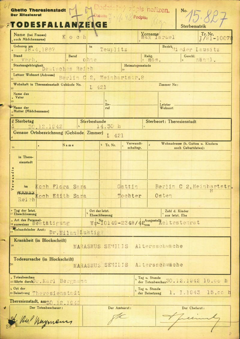 This database contains the names and fates of those who were deported from the territory of today’s Czech Republic, be it their homeland or may they have been deported to the Theresienstadt ghetto before from different european countries. Further, it contains basic information on those men, women and children, most of whom were Roma or Sinti, who died as prisoners of the so-called „Gypsy camp I“ Lety u Písku.