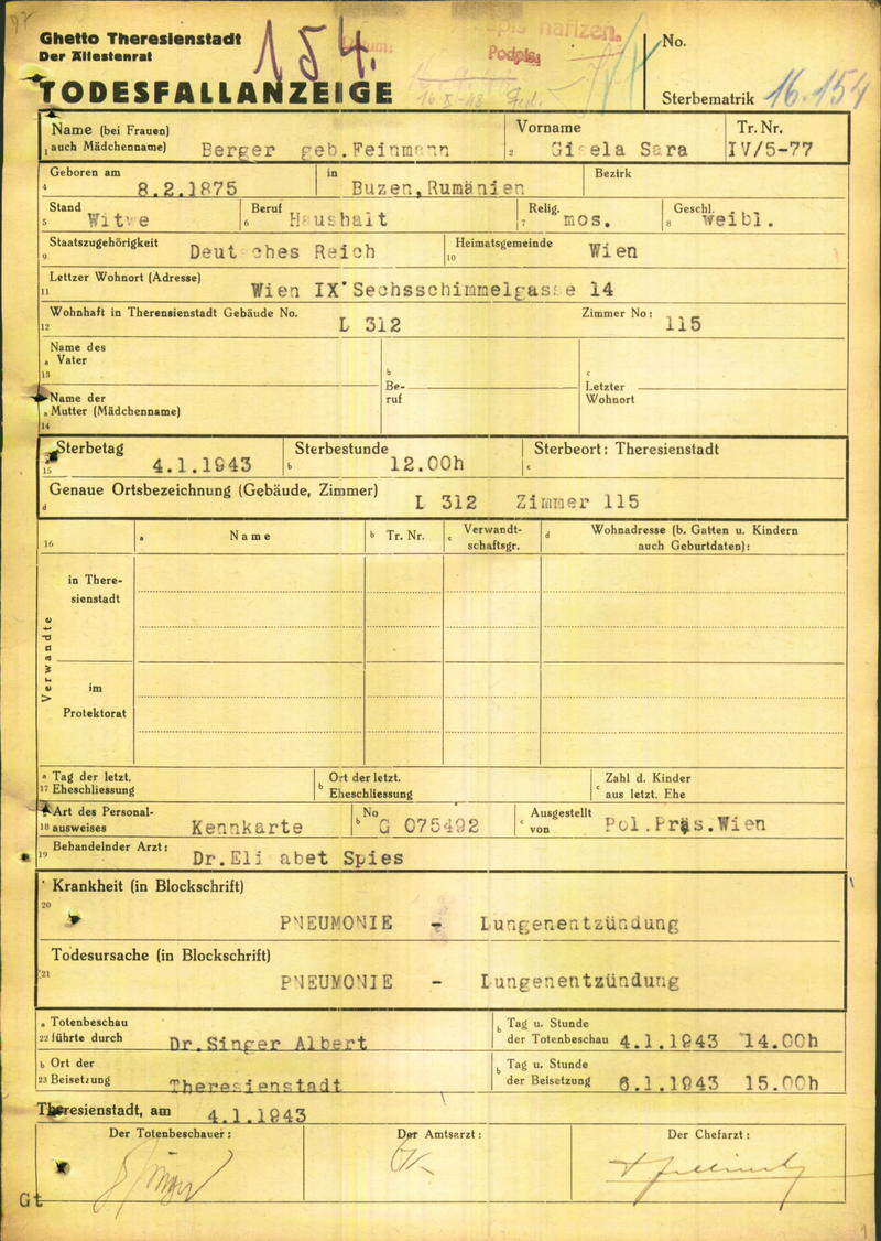 This database contains the names and fates of those who were deported from the territory of today’s Czech Republic, be it their homeland or may they have been deported to the Theresienstadt ghetto before from different european countries. Further, it contains basic information on those men, women and children, most of whom were Roma or Sinti, who died as prisoners of the so-called „Gypsy camp I“ Lety u Písku.